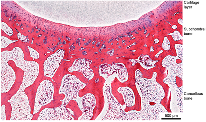关节软骨组织中没有血管、淋巴、神经组织,一旦发生损伤或退化病变后难以自修复。软骨组织的损伤经常伴随软骨下骨的病变,仿生骨和软骨组成和结构的分层多孔支架被认为是修复骨软骨组织的方法之一。