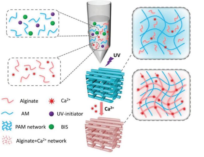 图2. 双网络水凝胶生物支架的制备过程