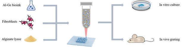 解放军总医院的付小兵团队于“Biofabrications”杂志上发表的“Enzymatically degradable alginate/gelatin bioink promotes cellular behavior and degradation in vitro and in vivo”一文中,研究人员通过将褐藻胶裂解酶加入海藻酸钠/明胶生物墨水,制备出可降解生物墨水。该墨水能够在不牺牲细胞活力的情况下,促进了细胞的增殖、粘附和迁移。基于该墨水打印的结构植入体内其降解特性仍然有效,且有明显的细胞浸润现象。可降解性海藻酸钠基生物墨水的研发为海藻酸钠在口腔和义眼治疗中的应用提供了一个新的途径。