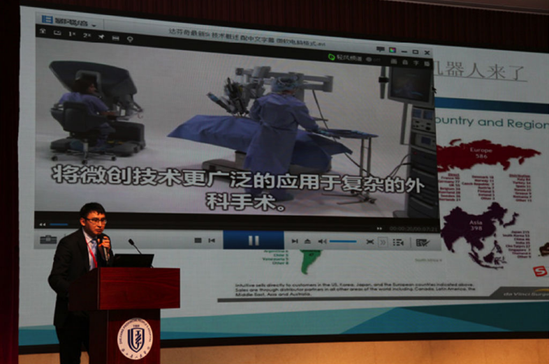 研讨会上,王知非教授将“新宠”带到了报告现场。并且一拿出来亮相,就引起了在场专家们的极大兴趣和关注。王教授不无自豪地说,3个月前在芝加哥美国机器人外科年会(CRSA)上,他带着这个小东西做的报告,也让到会的国际外科同行们惊叹不已。