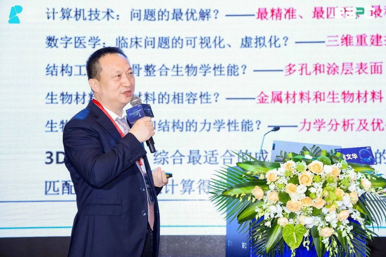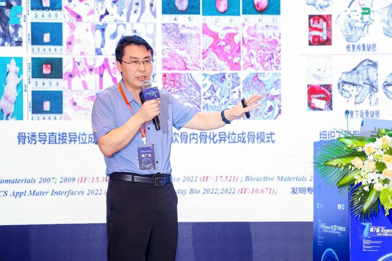 华中科技大学张胜明教授做报告:再生医学材料与3D生物打印的创新应用。张教授指出了组织工程支架对于再生医学的关键性作用。结合多年的研究积淀,团队在19年首次提出了组织器官再生医学四要素概念:材料、干细胞、生长因子和物理刺激协同作用。报告指出骨再生修复材材料需求很大,市场接近千亿,当前难愈性骨缺损治疗面临的挑战还比较严峻。张教授同时也分享了国家“十三五”和“十四五”在生物材料领域的布局,以及骨再生修复的创新方案,推动了国家在该领域的重要发展。