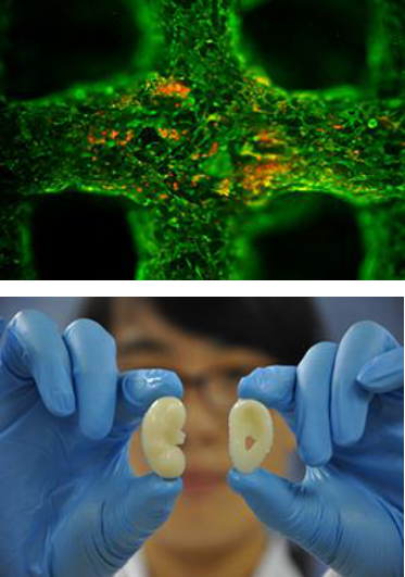 基于组织器官影像数据重建或仿生设计的三维模型,由3D打印机定位装配活细胞制造的人工组织和器官,可用于人体组织修复、器官移植、药物开发和生物传感等领域。