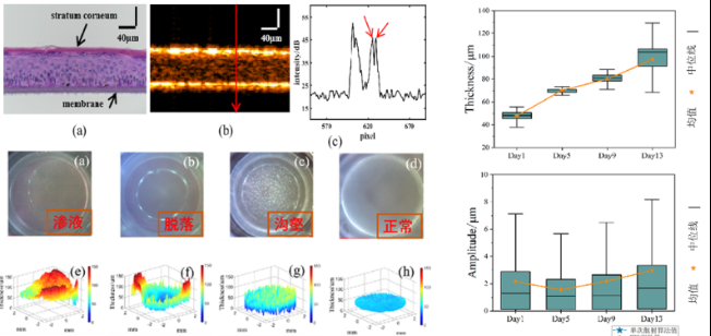 人工皮肤生长成像,支持表皮层厚、角质层厚、厚度分布、表面粗糙度等参数的定量分析。